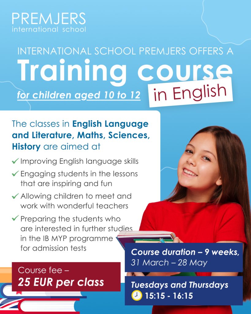 International School Premjers offers a training course in English for children aged 10 to 12.